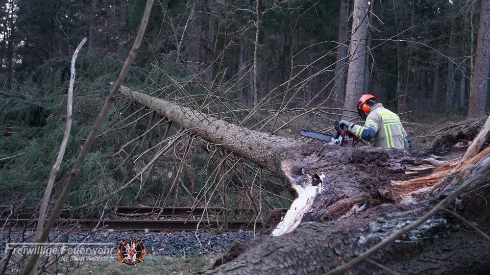 Ein über den Bahngleisen umgestürzter Baum wurde von der Feuerwehr beseitigt.