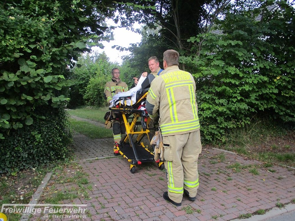 Die Bewohnerin wurde im Garten angetroffen und bis zum Eintreffen des Rettungsdienstes versorgt.
