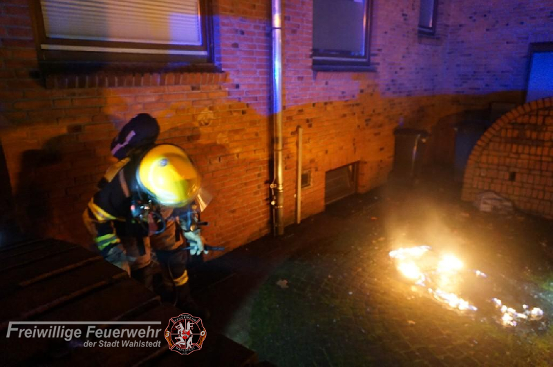 Aus bisher ungeklärten Gründen fing ein Altpapiercontainer Feuer. Mit einem Kleinlöschgerät wurde das Feuer gelöscht.