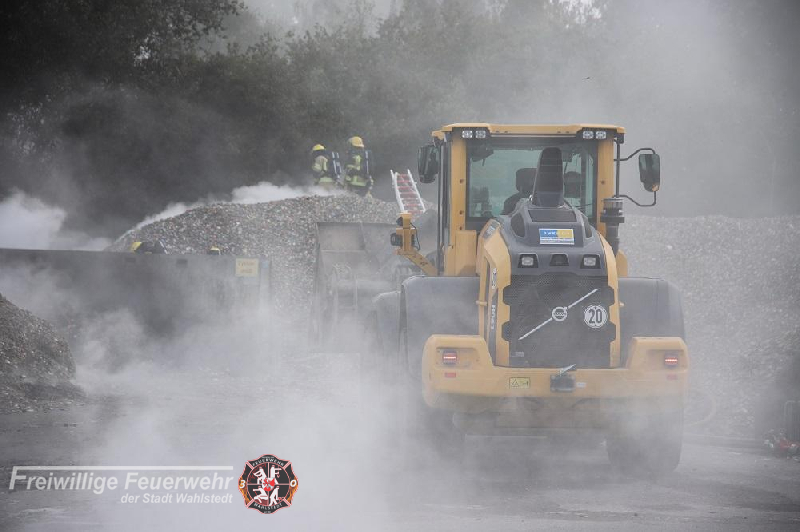 Im Verlauf des Einsatzes wurden die Maßnahmen der Feuerwehr durch einen Radlader sowie Fachpersonal des Betriebes unterstützt. Der Radlader hatte die Aufgabe, dass Recyclingmaterial auseinander zu ziehen um so besser an die Glutnester zu kommen.