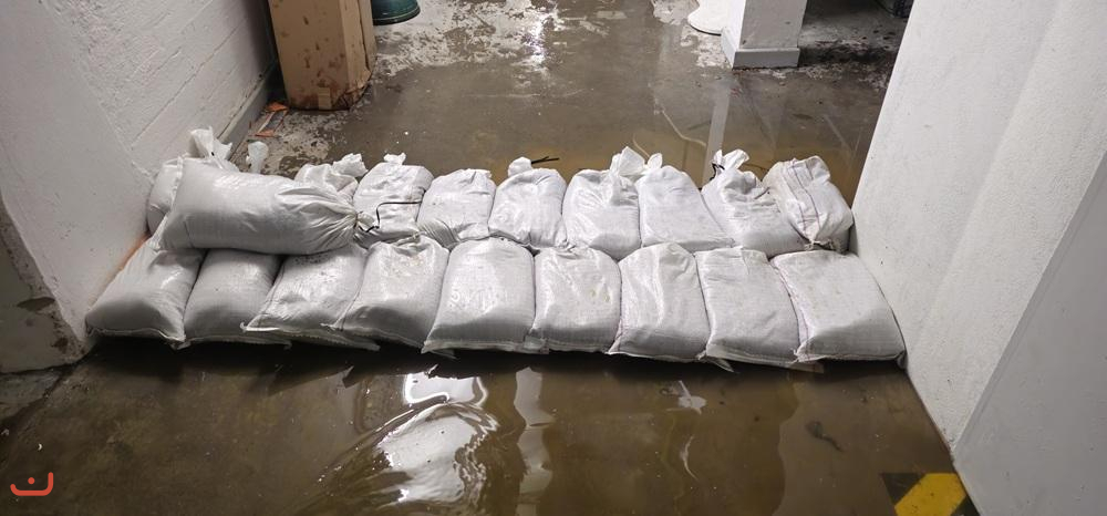 Durch den Einsatz von zugeführten Sandsäcken konnte eine weitere Ausbreitung im Keller verhindert werden.