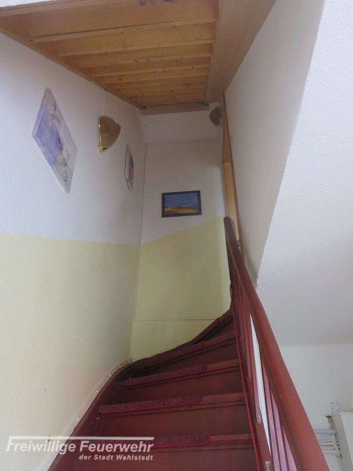 Der Patient wurde mit der Feuerwehr durch das enge Treppenhaus nach draußen gebracht.