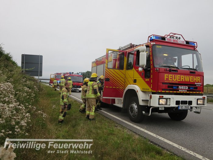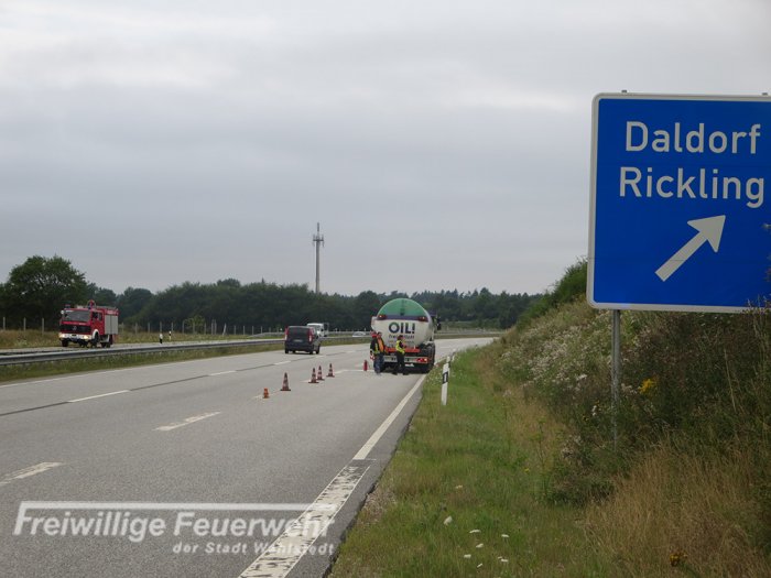 Die Feuerwehren Wahlstedt,Daldorf und Rickling wurden heute zu einem brennenden Tankwagen auf die BAB 21 alarmiert.